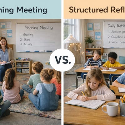 Morning meetings have become a common part of many elementary classrooms. They create space for connection.They encourage sharing and build community. And for many teachers, they are a meaningful way to begin the day. But as conversations around emotional regulation and classroom structure continue to evolve, some teachers are asking a different question: Is a morning meeting the only ... Read More about Morning Meetings or Daily Structured Reflection? What Teachers Should Consider